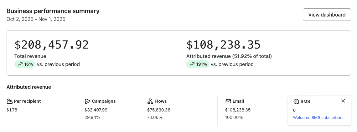 Before working with us, this brand had traffic and sales but almost no email revenue. In just 30 days, we built their lifecycle engine from scratch, launched campaigns, and scaled flows that turned email into a primary growth channel.